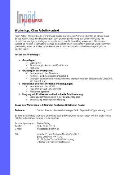 Nach Artikel 113 der EU-KI-Verordnung müssen Arbeitgeber*innen seit Anfang Februar dafür Sorge tragen, dass ihre Beschäftigten über grundlegende Kompetenzen im Umgang mit Künstlicher Intelligenz verfügen, so sie diese im beruflichen Alltag verwenden. Mit diesem Workshop werden Beschäftigte gemäß den gesetzlichen Vorschriften geschult und bekommen gleichzeitig einen Leitfaden in die Hand, wie KI in ihrem Arbeitsumfeld bestmöglich genutzt werden kann.